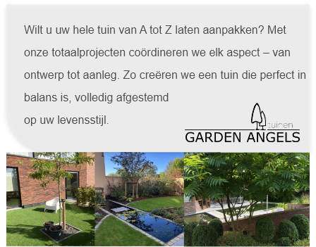 Een tuin is pas echt compleet met de juiste elementen die samen een harmonieus geheel vormen. Bij Garden Angels combineren we vakmanschap en passie om van uw buitenruimte een plek te maken waar u met volle teugen van geniet. Van terrassen tot totaalprojecten – ontdek wat wij voor u kunnen betekenen.